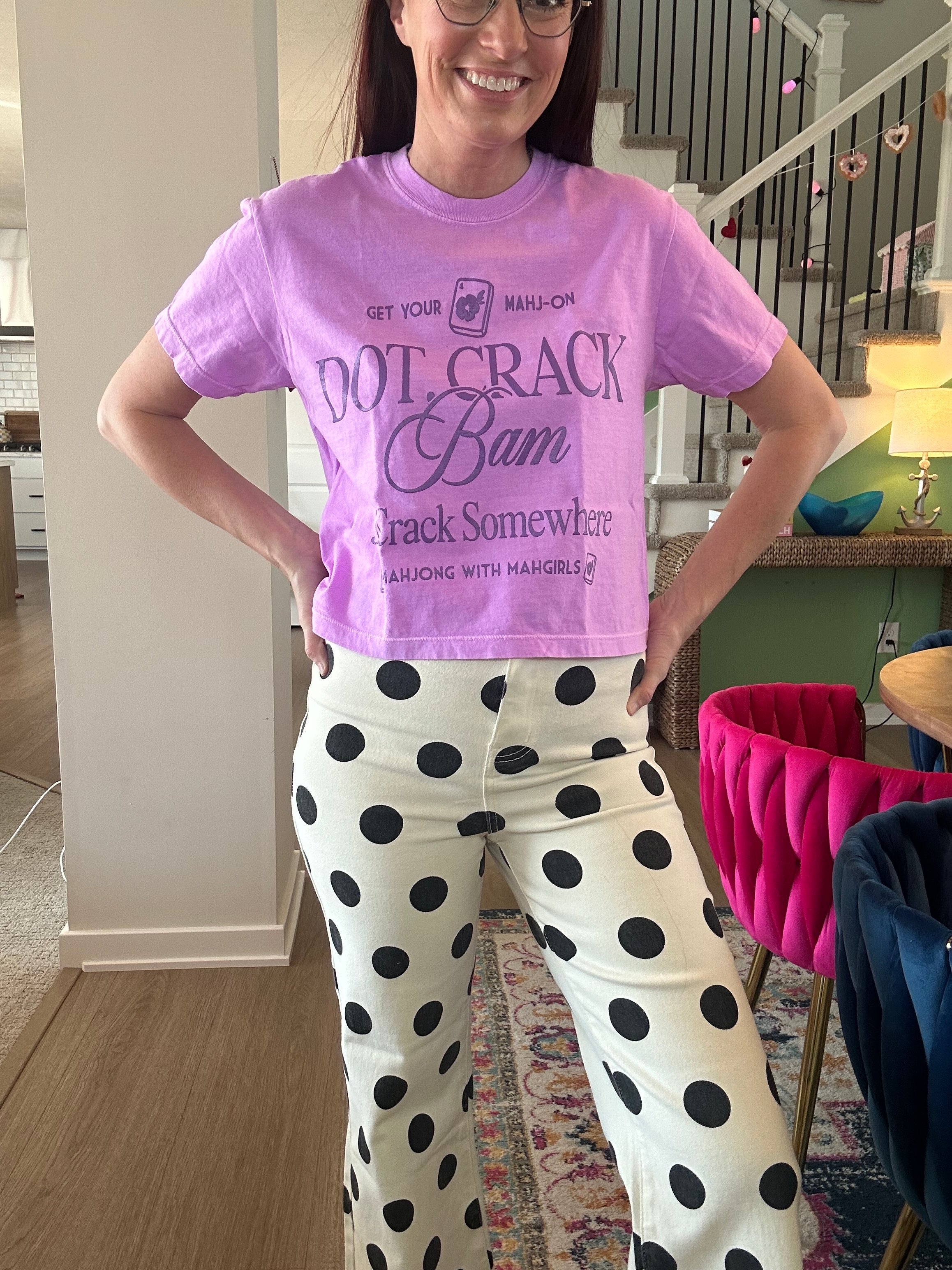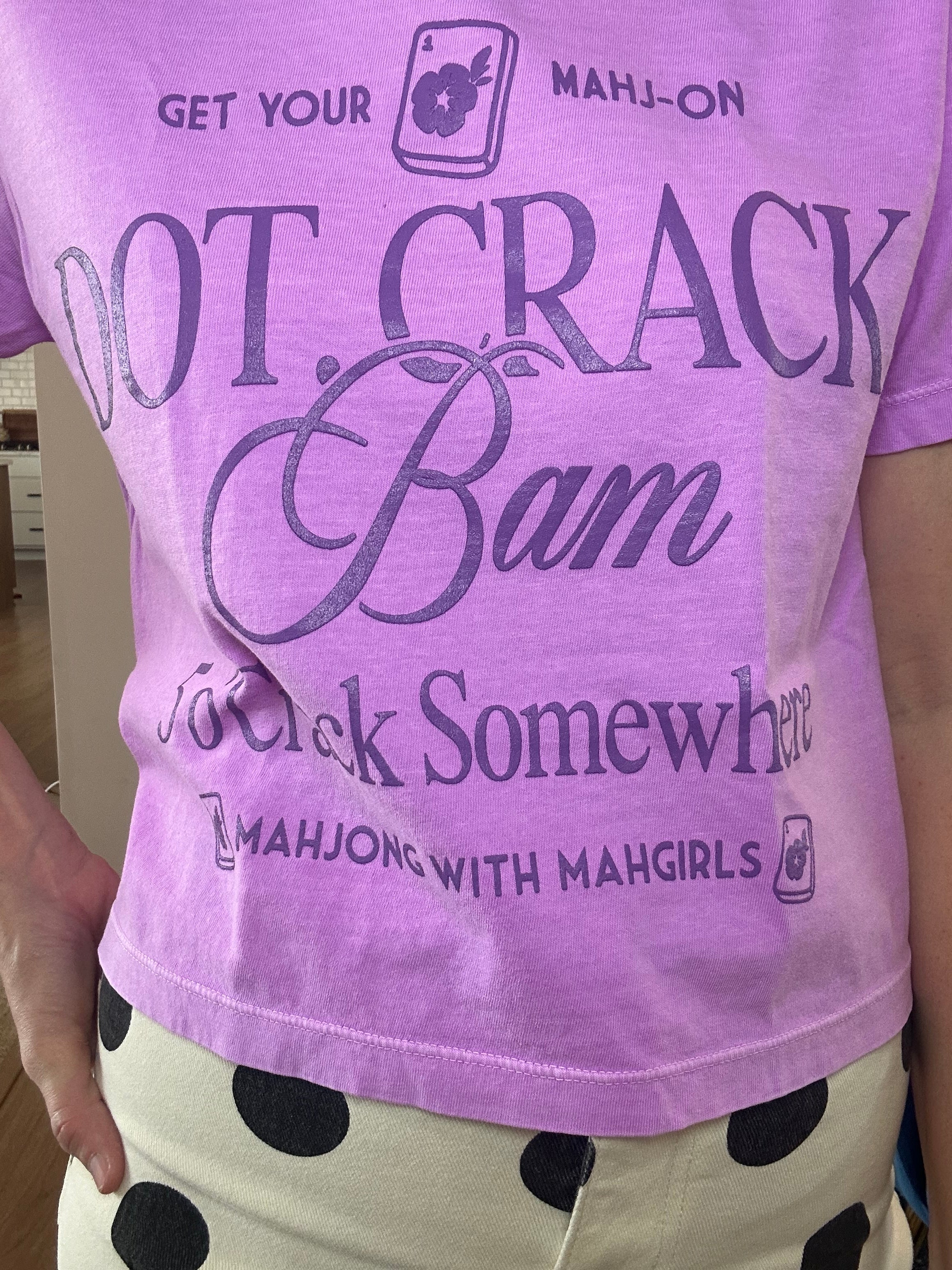 Celebrate your passion for mahjong with this vibrant purple cropped tee. Designed for players who take their game seriously while maintaining a playful spirit, this shirt combines comfort with unmistakable style. The bold color and flattering crop make it an ideal choice for mahjong tournaments, casual game nights, or any gathering where tiles and strategy reign supreme. Whether you're a seasoned player or enthusiast, wear your love of the game with confidence and flair.