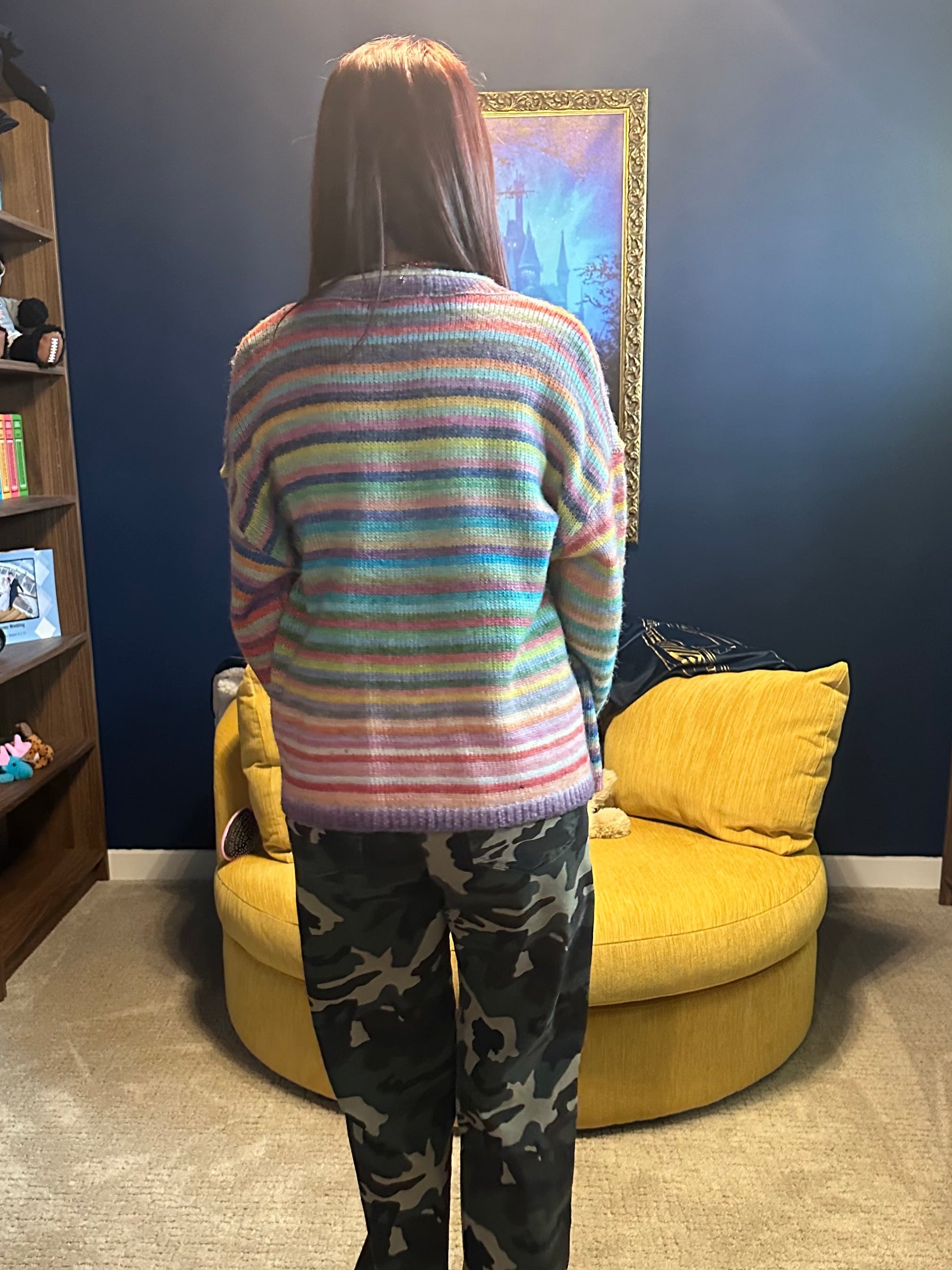 Elsa Rainbow Cardigan - Small is backordered and will ship as soon as it is back in stock.