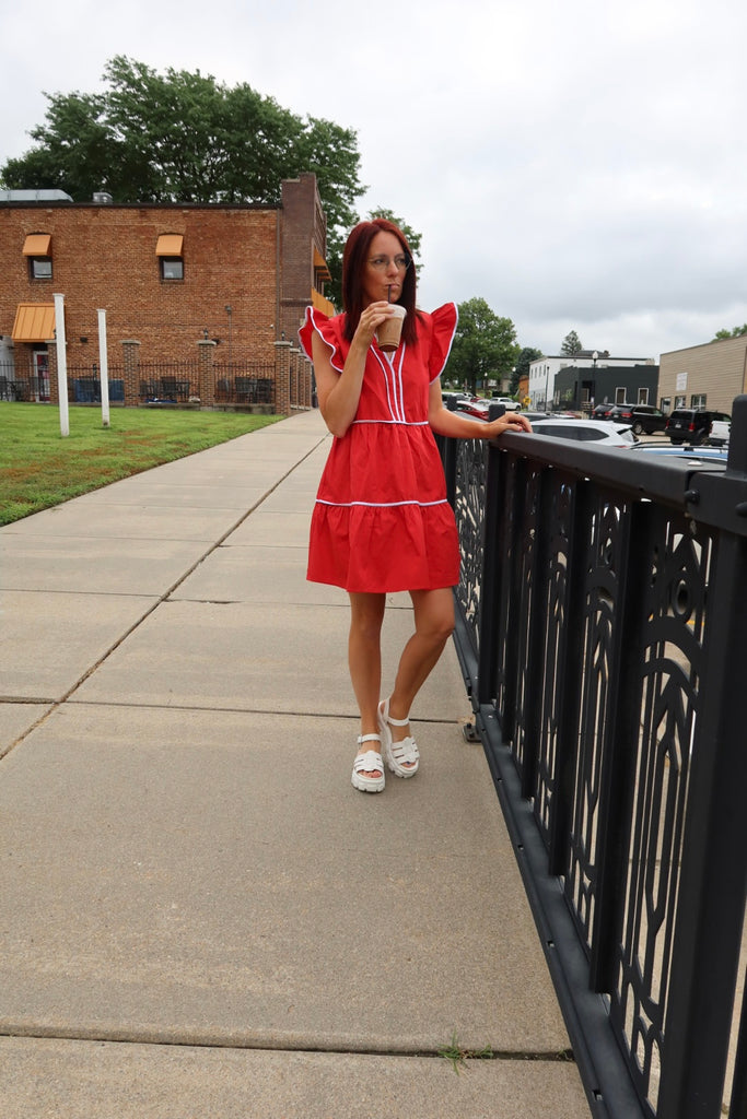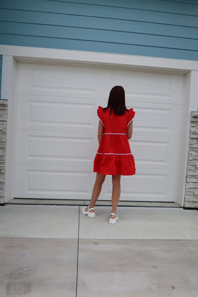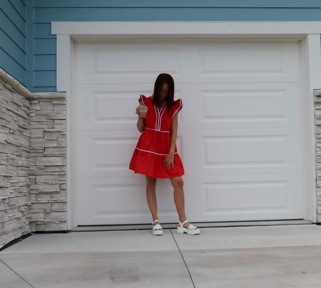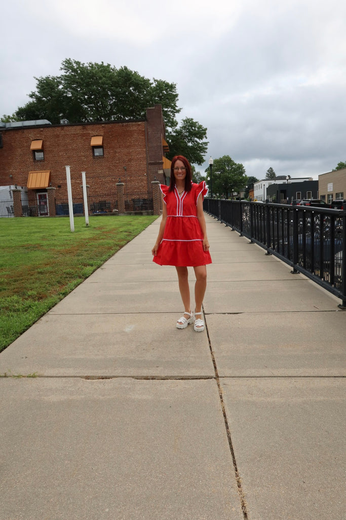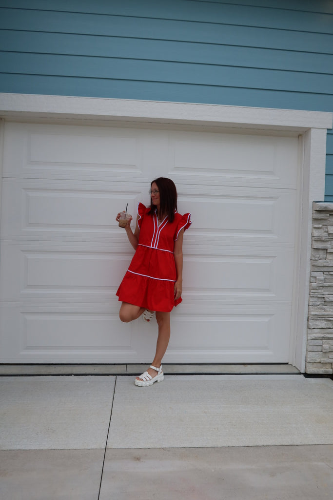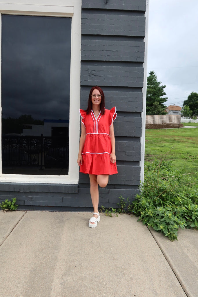 This red and white dress is designed specifically for gameday, combining style and comfort. Crafted to fit true to size, it ensures a flattering silhouette while allowing ease of movement. Ideal for showing team spirit with a polished look, this dress balances vibrant colors with a tailored fit for confident wear throughout the event.