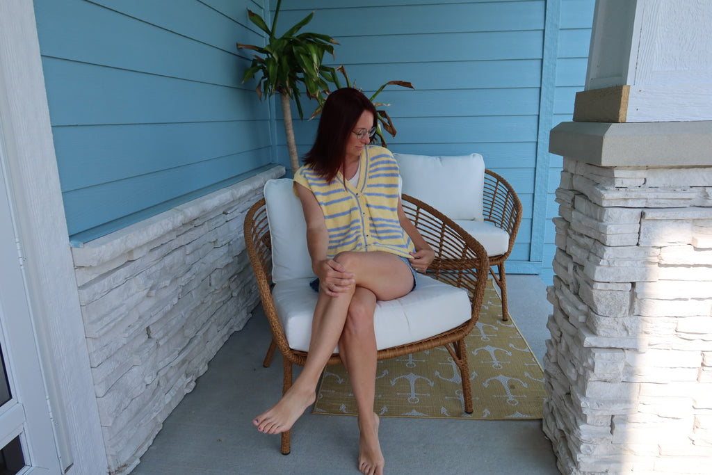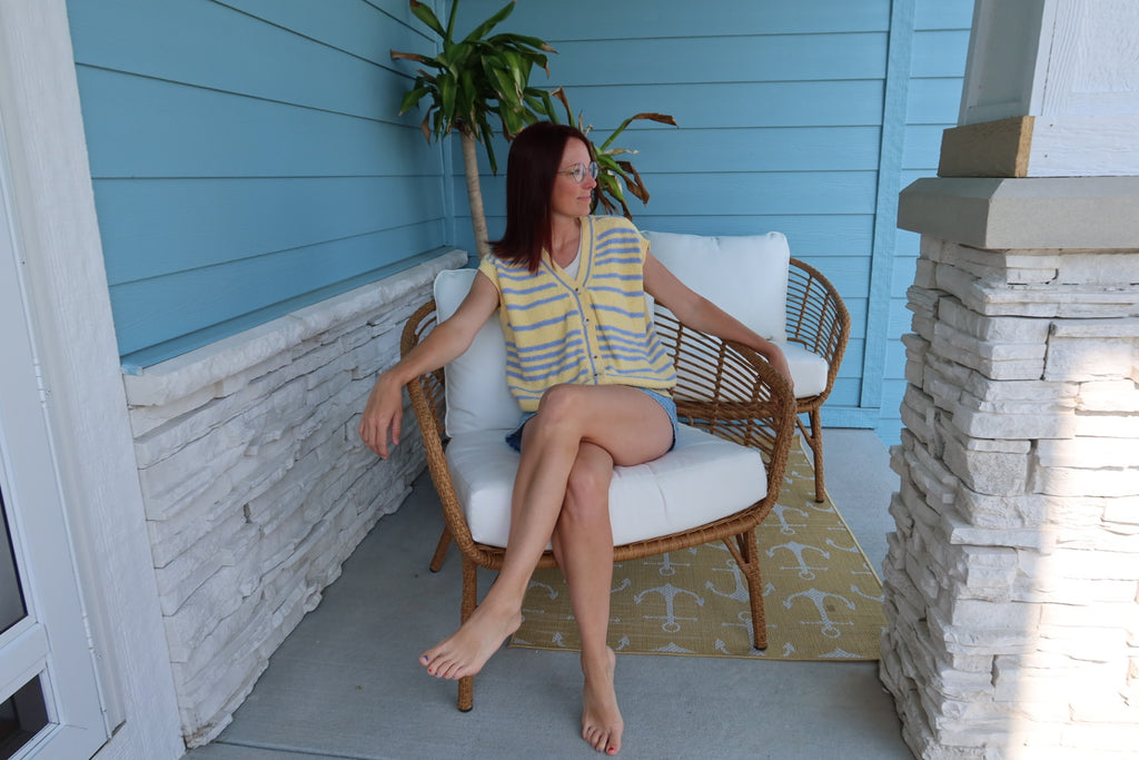 Yellow and Blue Button Up Short Sleeve Sweater
